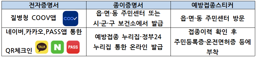 • 의학적 사유에 의한 방역패스 적용 예외자 증빙 서류: 보건소 발급 '접종증명 음성확인제 예외 확인서'