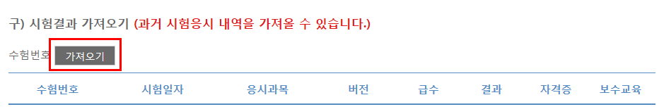 단 개명으로 인하여 응시내역 가져오기가 불가능 할 경우에는 센터로 문의 주시기 바랍니다.